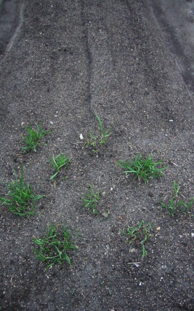 ニラの奥の2つすじがある場所にはネギの種を蒔(ま)きました。